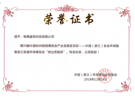 中國安全環(huán)保展暨浙江首屆環(huán)保博覽會突出貢獻獎