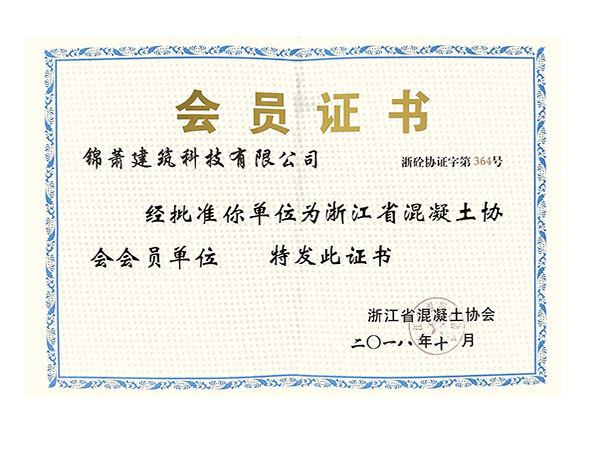 浙江省混凝土協(xié)會(huì)會(huì)員證書(shū)