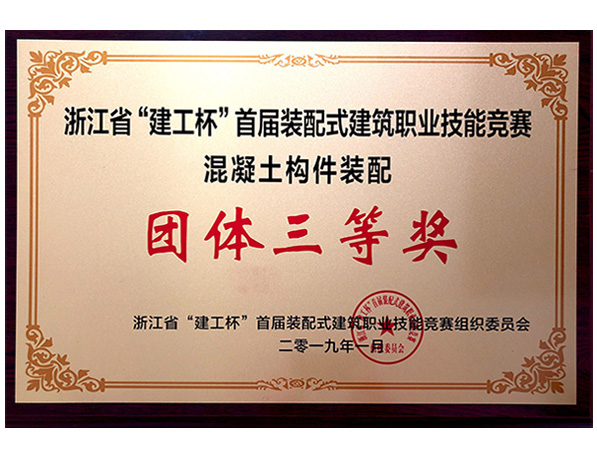 浙江省“建工杯”競(jìng)賽構(gòu)件裝配團(tuán)體三等獎(jiǎng)