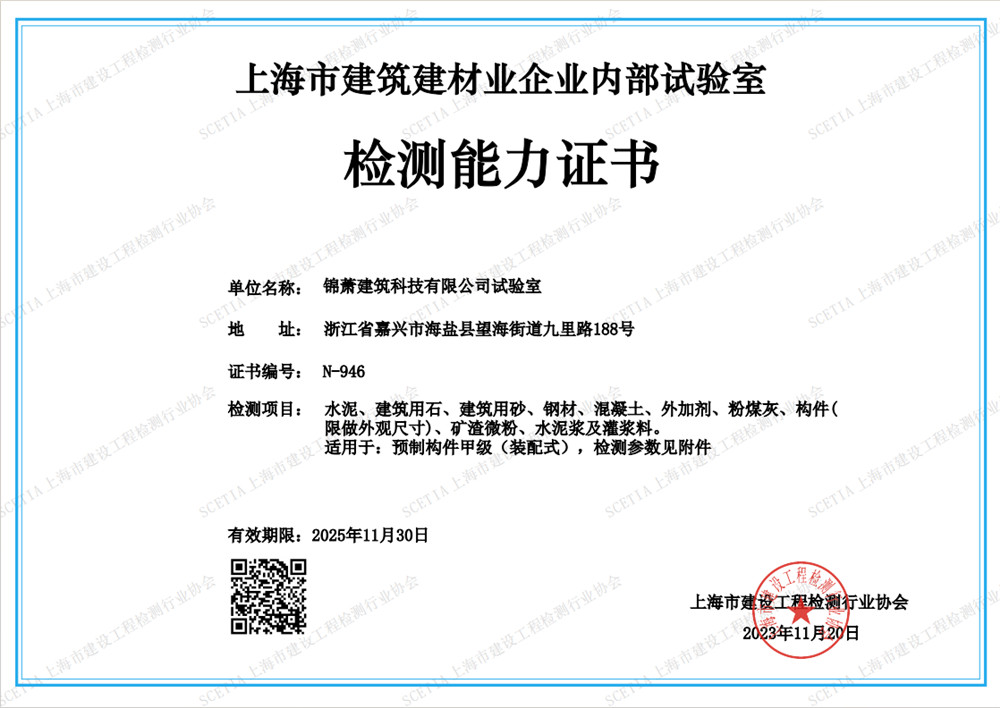 上海市建筑建材業(yè)企業(yè)內(nèi)部試驗室檢測能力證書