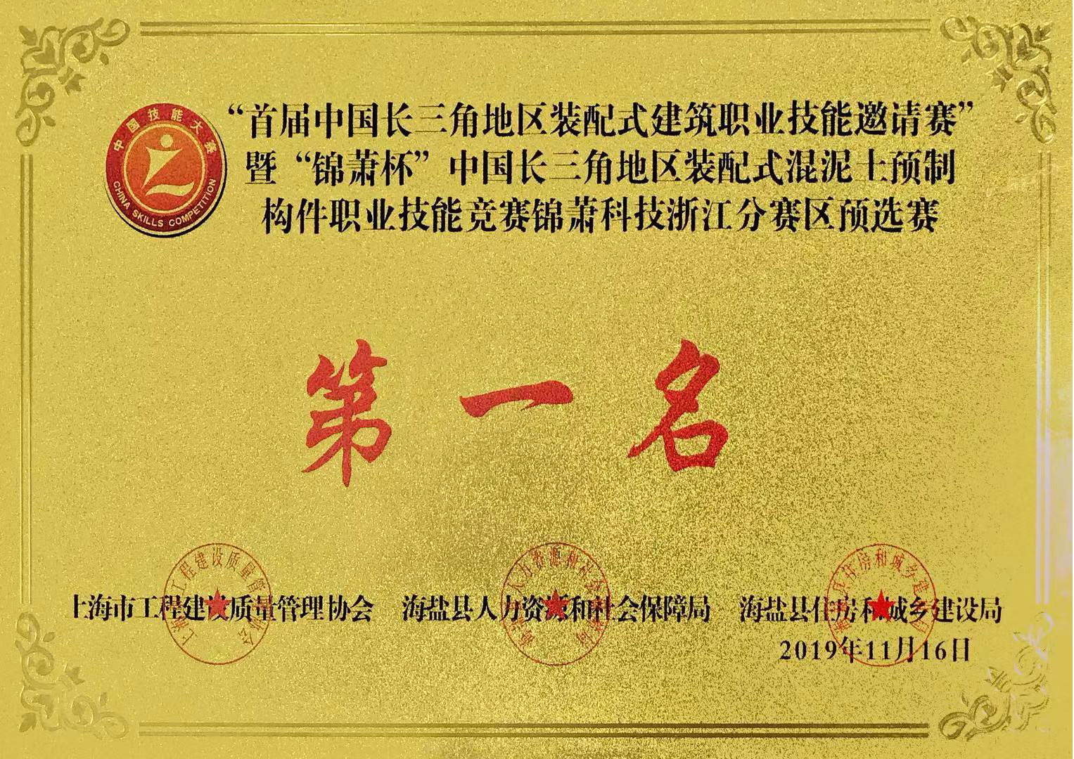 錦蕭杯中國(guó)長(zhǎng)三角地區(qū)裝配式混凝土預(yù)制構(gòu)件職業(yè)技能競(jìng)賽浙江分賽區(qū)冠軍