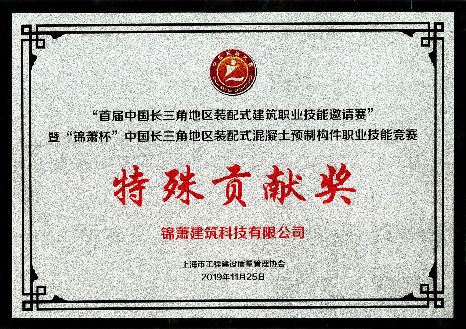 錦蕭杯中國長三角地區(qū)裝配式混凝土預制構件職業(yè)技能競賽特殊貢獻獎