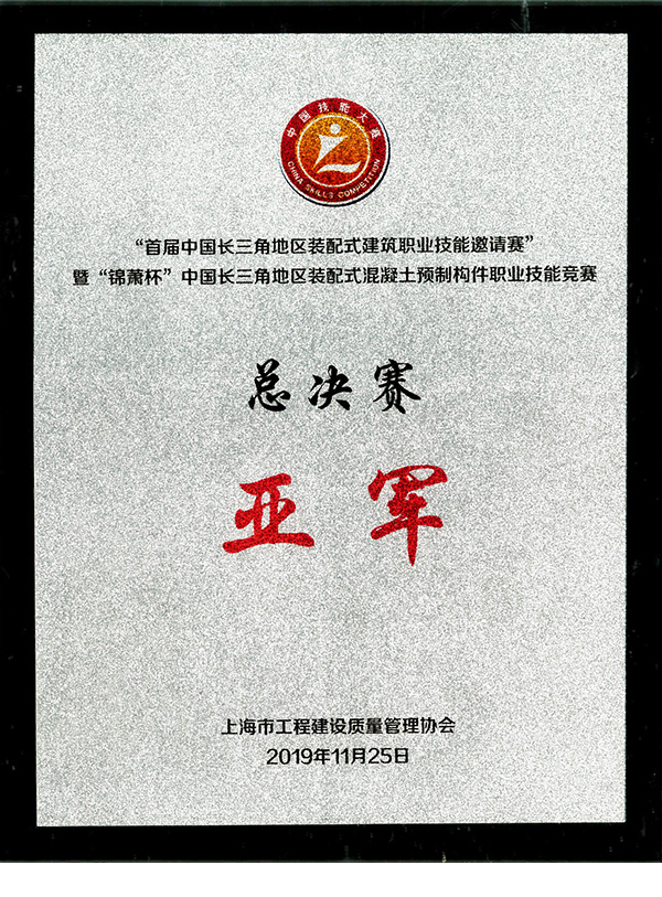 錦蕭杯中國(guó)長(zhǎng)三角地區(qū)裝配式混凝土預(yù)制構(gòu)件職業(yè)技能競(jìng)賽總局賽亞軍