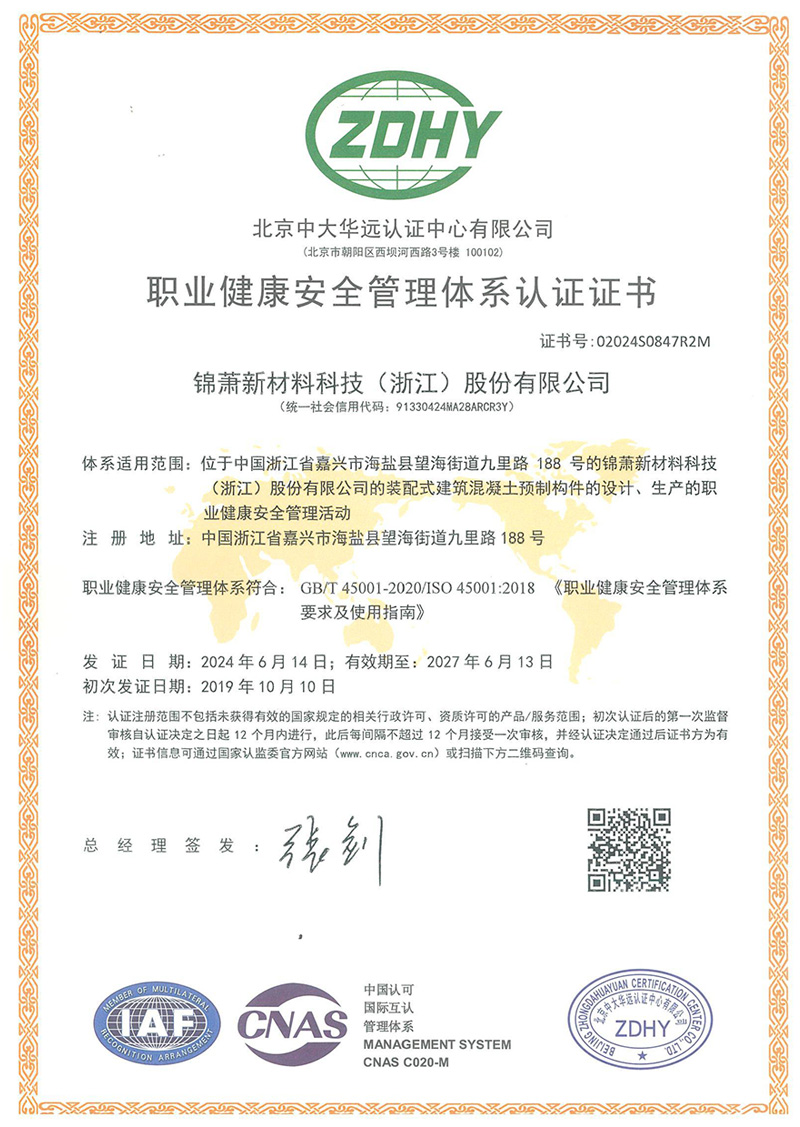 職業(yè)健康與安全管理體系認(rèn)證證書