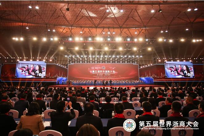 2019年11月13日上午9點整,以“創(chuàng)業(yè)創(chuàng)新闖天下、合心合力強浙江”為宗旨,以“聚力高質(zhì)量、共筑中國夢”為主題的第五屆世界浙商大會在杭州國際博覽中心開幕。