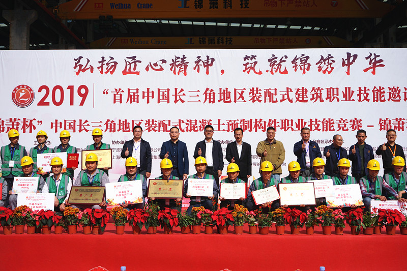 2019年11月16日上午,伴隨著莊嚴(yán)的國歌聲,首屆 “錦蕭杯”中國長三角地區(qū)裝配式混凝土預(yù)制構(gòu)件職業(yè)技能競賽-浙江分賽區(qū)預(yù)賽閉幕式在錦蕭科技海鹽裝配式預(yù)制構(gòu)件生產(chǎn)基地順利舉行。