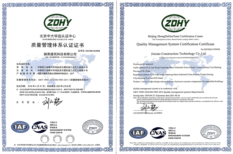 近日,錦蕭建筑科技有限公司正式通過了ISO9001:2015質(zhì)量管理體系認證,并獲得認證證書,這標志著公司在產(chǎn)品研發(fā)設計、生產(chǎn)及銷售服務方面已達到國際化標準,獲得了國際權(quán)威組織的認可。