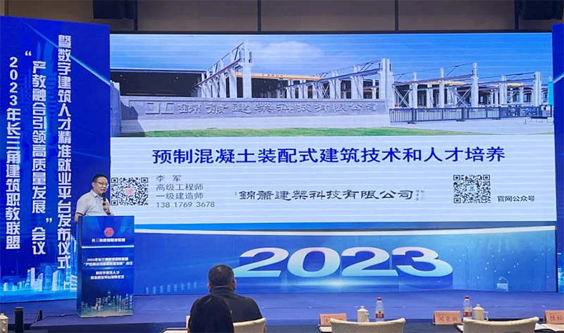 在2023年長(zhǎng)三角建筑職教聯(lián)盟“產(chǎn)教融合引領(lǐng)高質(zhì)量發(fā)展”會(huì)議暨數(shù)字建筑人才精準(zhǔn)就業(yè)平臺(tái)發(fā)布儀式上,錦蕭科技成為長(zhǎng)三角建筑職教聯(lián)盟新成員,李軍受邀作關(guān)于預(yù)制混凝土裝配式建筑技術(shù)和人才培養(yǎng)的專題講座。同時(shí),作為該領(lǐng)域?qū)<?,李軍?duì)全上海和浙江省住建廳質(zhì)監(jiān)系統(tǒng)培訓(xùn)作《預(yù)制裝配式整體剪力墻建筑的質(zhì)量控制要點(diǎn)》的講課。