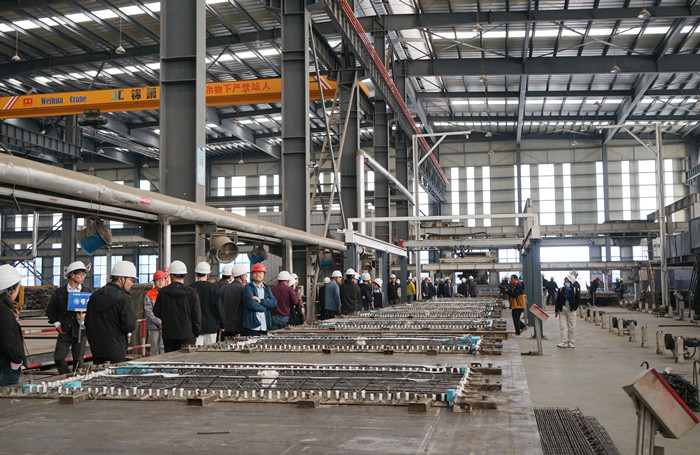 作為本次論壇觀摩企業(yè)之一,23日上午,與會(huì)行業(yè)協(xié)會(huì)領(lǐng)導(dǎo)、企業(yè)代表、專家學(xué)者等近150人走進(jìn)錦蕭科技。走出會(huì)場(chǎng),走進(jìn)現(xiàn)場(chǎng),實(shí)地探討裝配式預(yù)制構(gòu)件智能制造與綠色發(fā)展新思路。錦蕭科技董事長(zhǎng)兼總經(jīng)理李軍、總工程師王建忠等公司領(lǐng)導(dǎo)陪同參觀。
