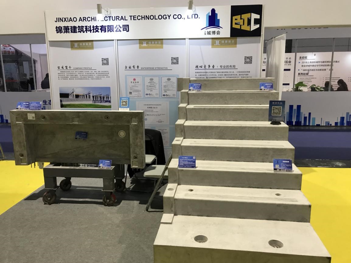 兩次展會,錦蕭科技以最強團隊陣容參與亮相。走進錦蕭展區(qū),參觀人氣爆棚,國內(nèi)外客商絡(luò)繹不絕。公司以混凝土預(yù)制構(gòu)件展品--預(yù)制樓梯、預(yù)制空調(diào)板為媒介,通過廠區(qū)沙盤展現(xiàn),背投宣傳片展映,向所有參觀的領(lǐng)導(dǎo)和觀眾展示了公司在裝配式建筑領(lǐng)域所擁有的技術(shù)實力及強悍的生產(chǎn)能力。