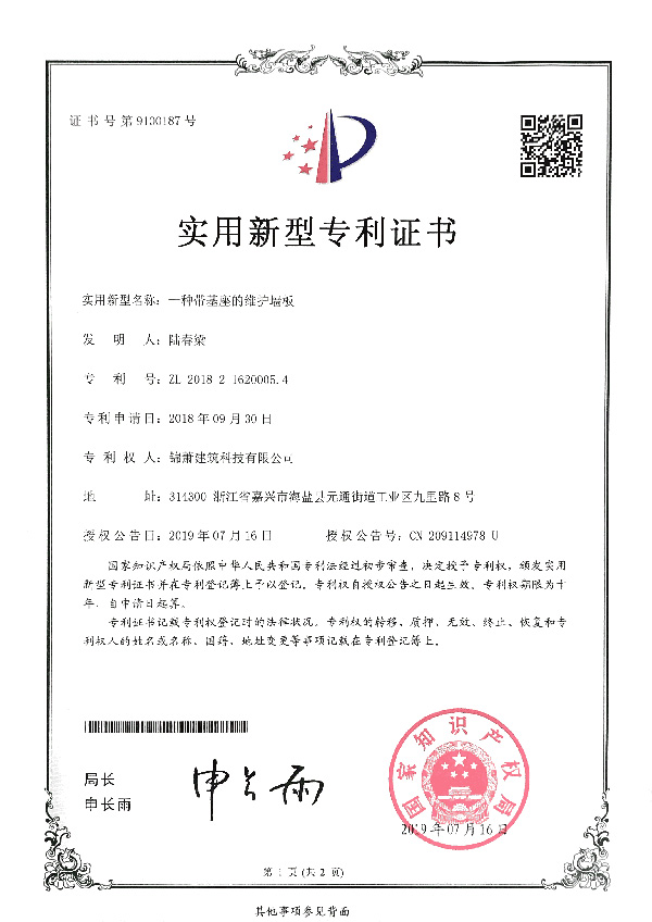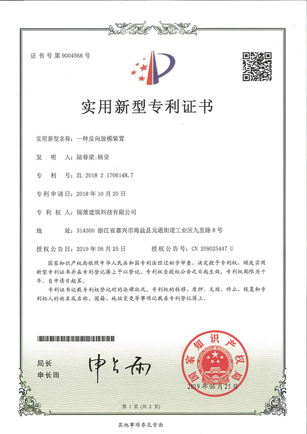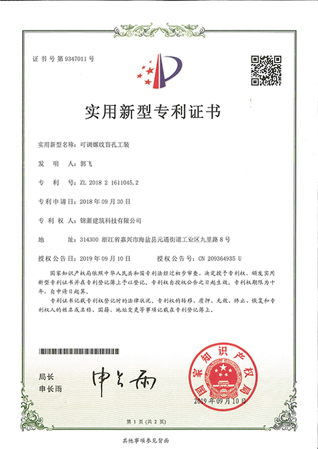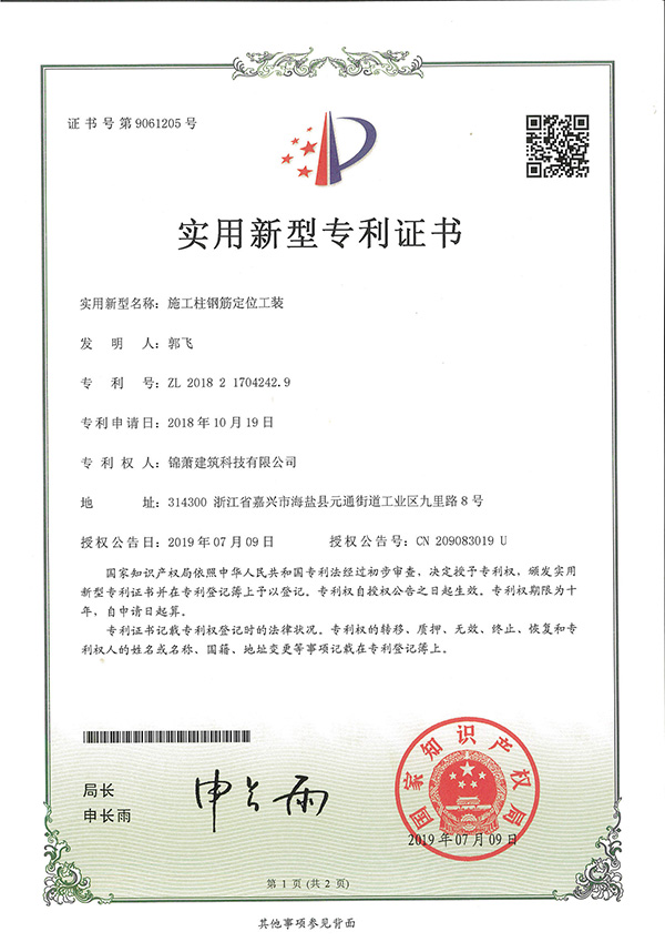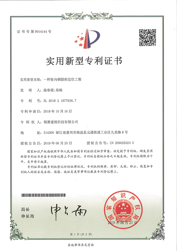 專利證書--PC預(yù)制構(gòu)件用通孔定位器
